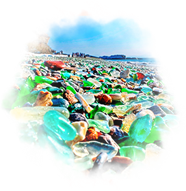 Откройте для себя чудеса Стеклянного берега. Прогулка по берегу, усыпанному сияющими камнями надолго сохранится в вашем сердце.